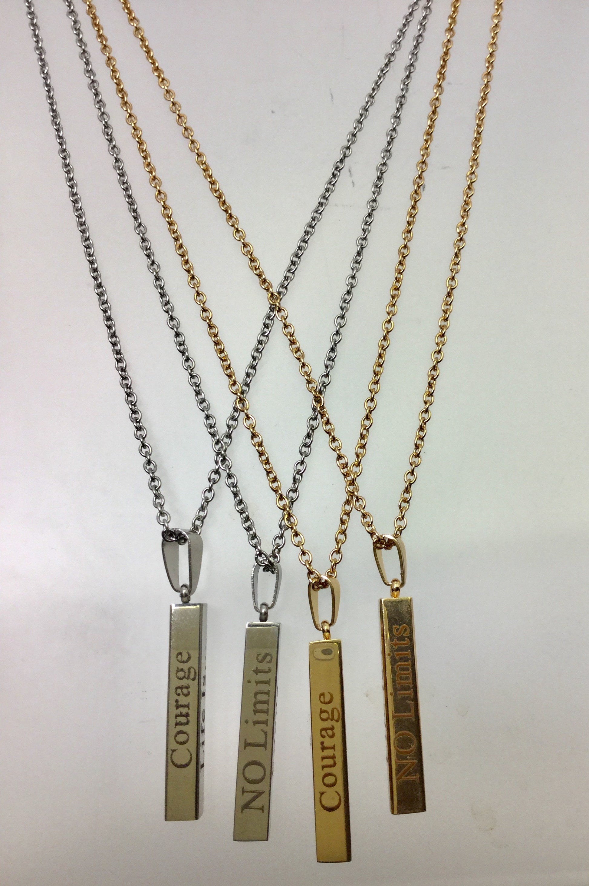 This Stainless Steele pendent is engraved on all 4 sides with the words